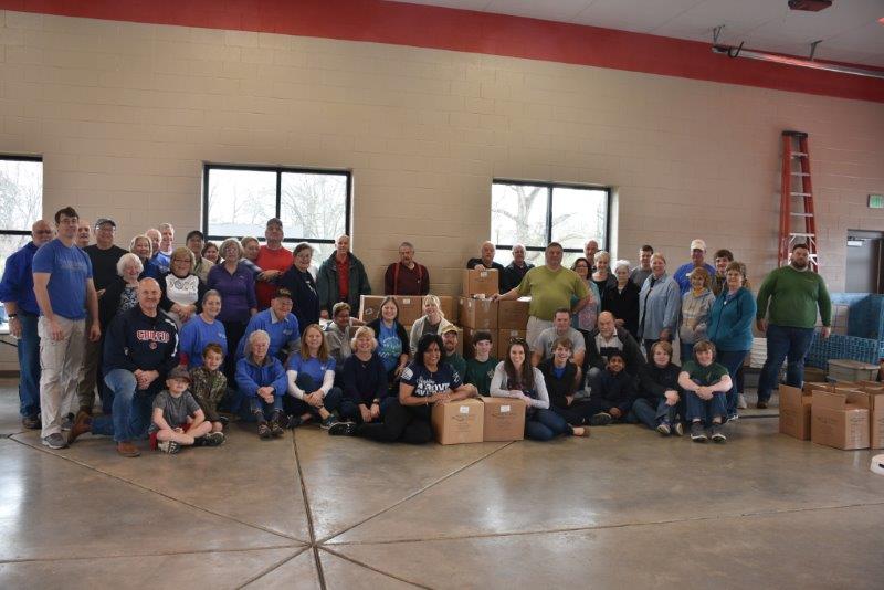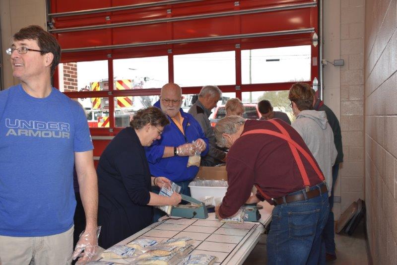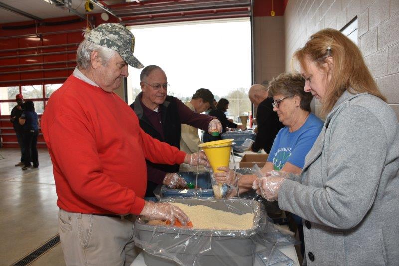 On Saturday, the 9th of March, the Rotary Club of Griffin joined with the Griffin Daybreak Rotary Club, local Boy Scout troops, and other volunteers to package 16,000 sevings of a nutritious meal to be distributed to local non-profit agencies, churches and others for further distribution to needy families. 17 roptarians and spouses met at 9:00 AM at Fire Station #2 in Griffin to package the meals. By noon, over 16,000 servings had been bagged, weighed, sealed and boxed for distribution.