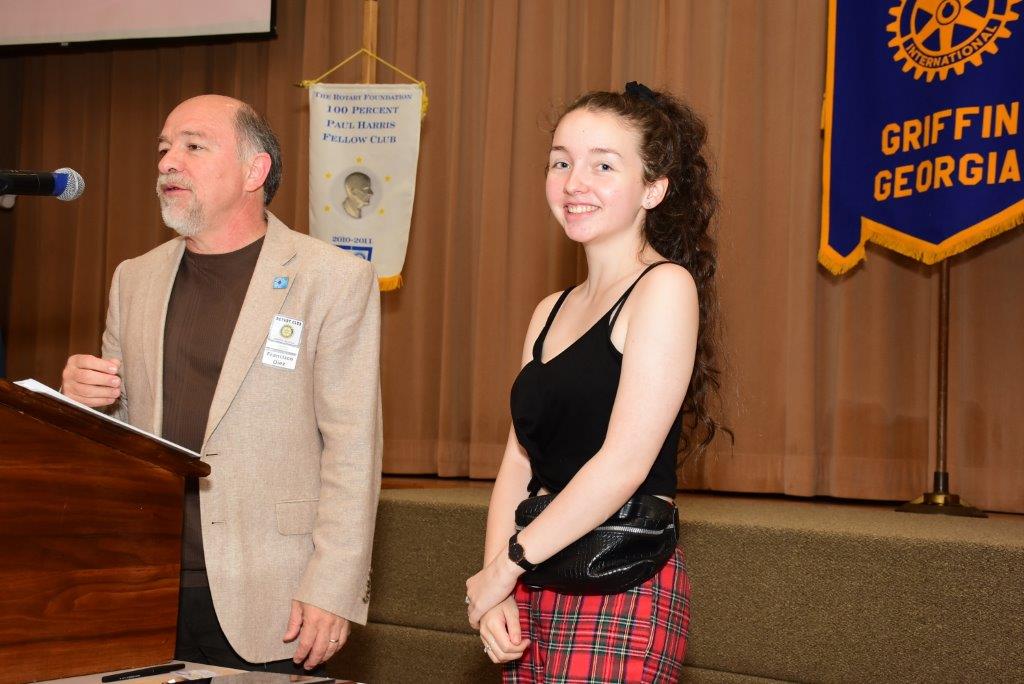 The Rotary Club of Griffin sponsored its first GRSP student in 1949 and every year since. This year's student, Jennifer Wright, our 91st, is from Scotland. She is attending the University of Georgia. Rotarian Francisco Diez-Gonzalez and his wife Claudia, are hosting for the year.